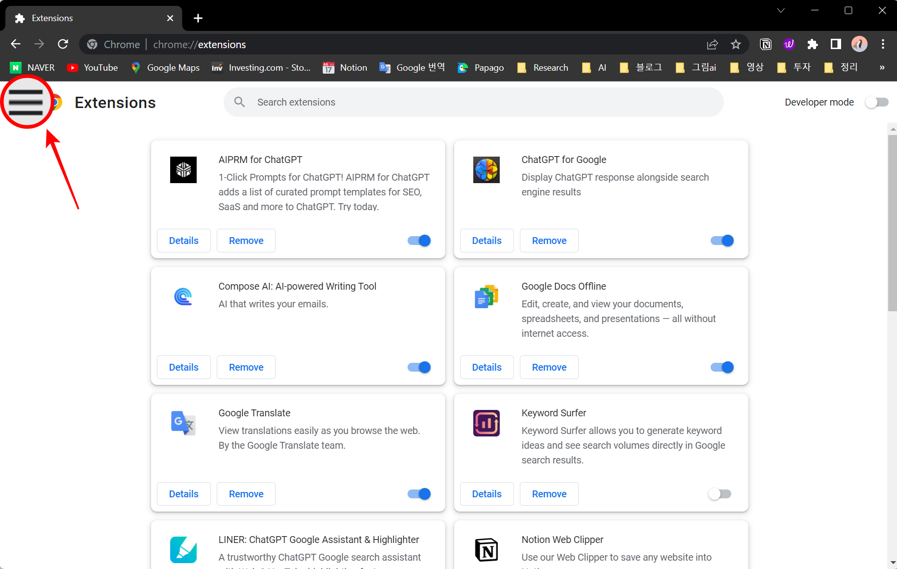 아래 3번 그림과 같이 기존에 설치된 확장 프로그램들이 뜰겁니다.