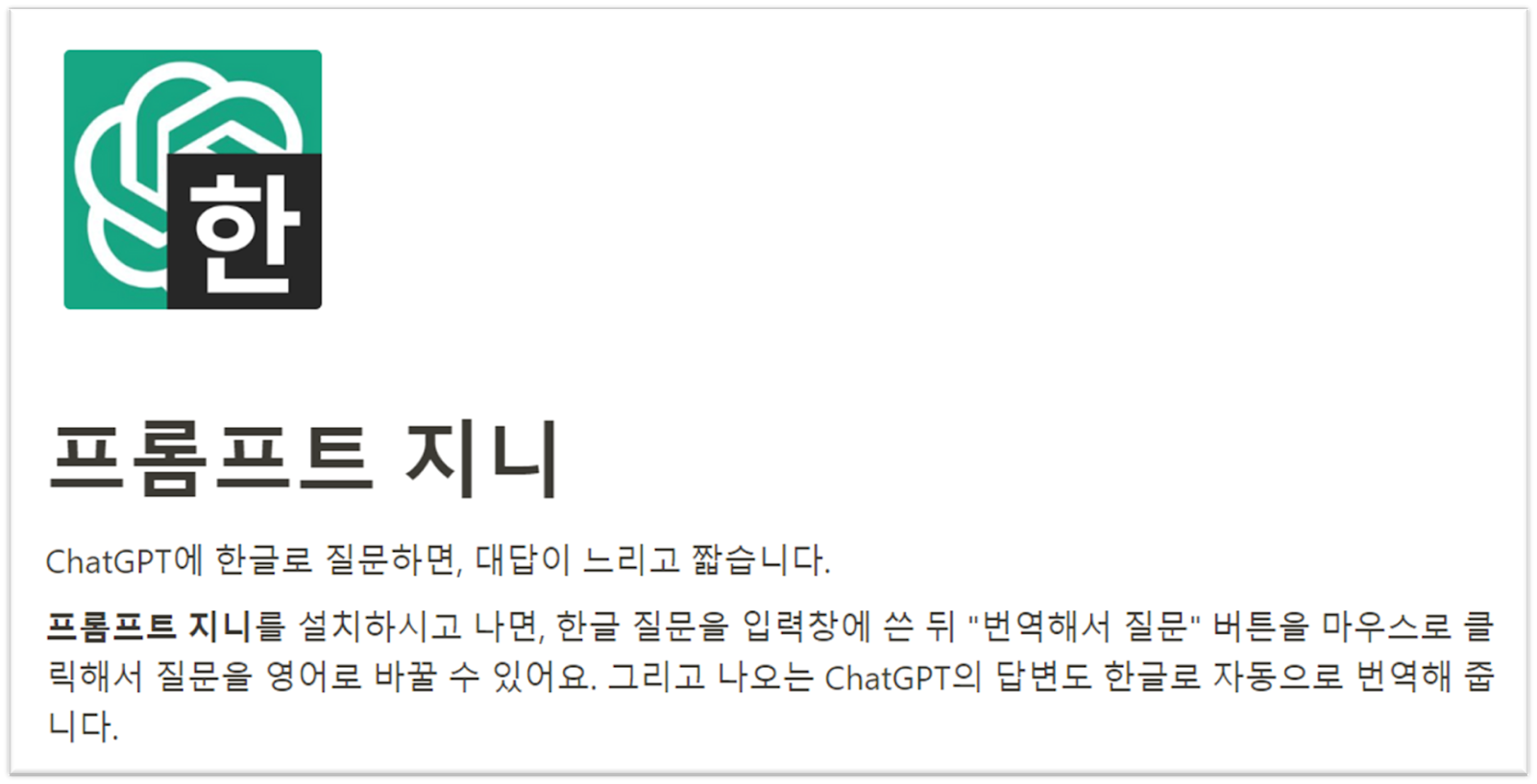 1. 프롬프트 지니 - ChatGPT 한글 자동번역기