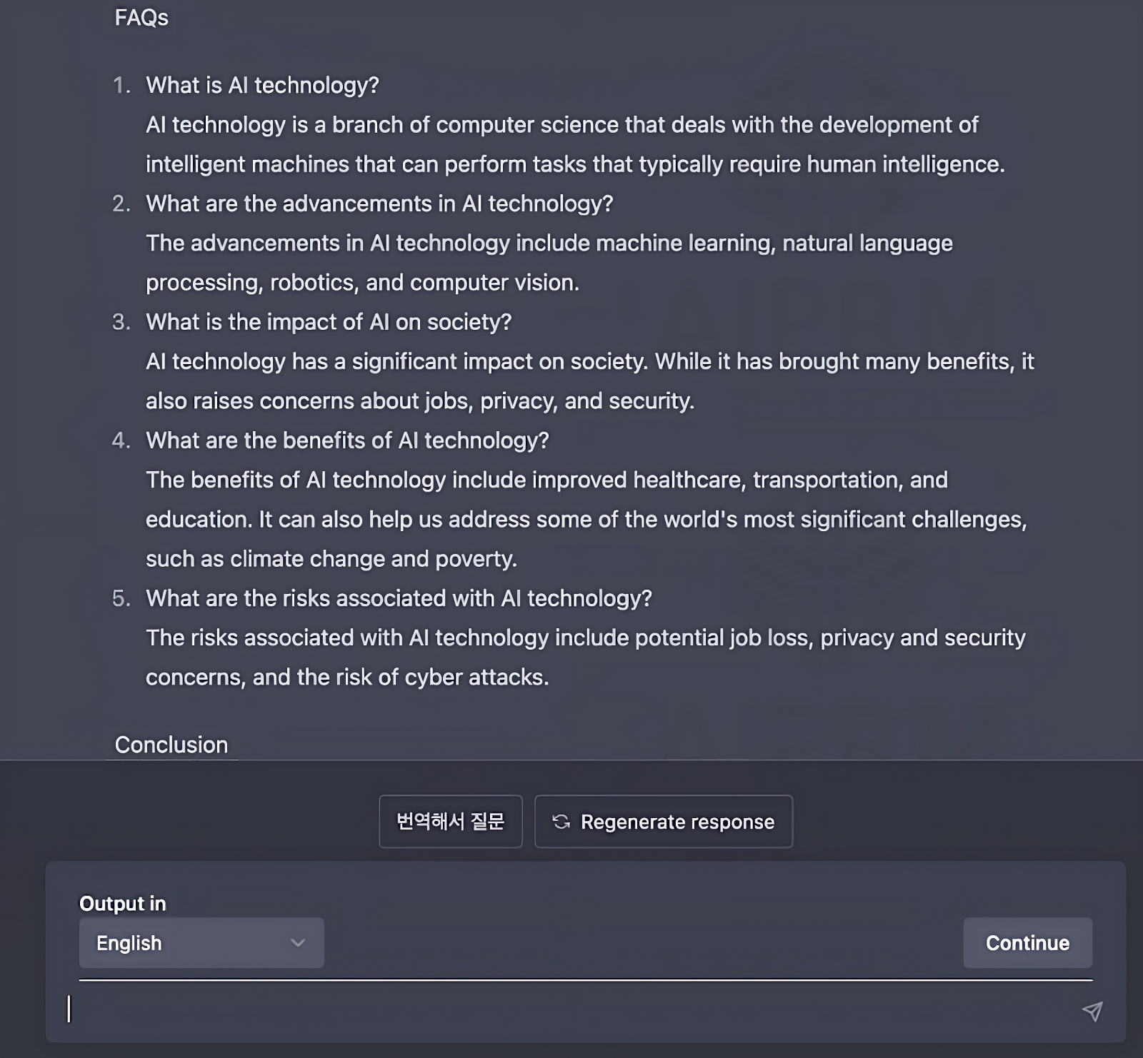 타이틀과 단계별로 글들을 정리해서 출력해 줍니다. 마지막은 FAQ 및 결론까지 내줍니다.