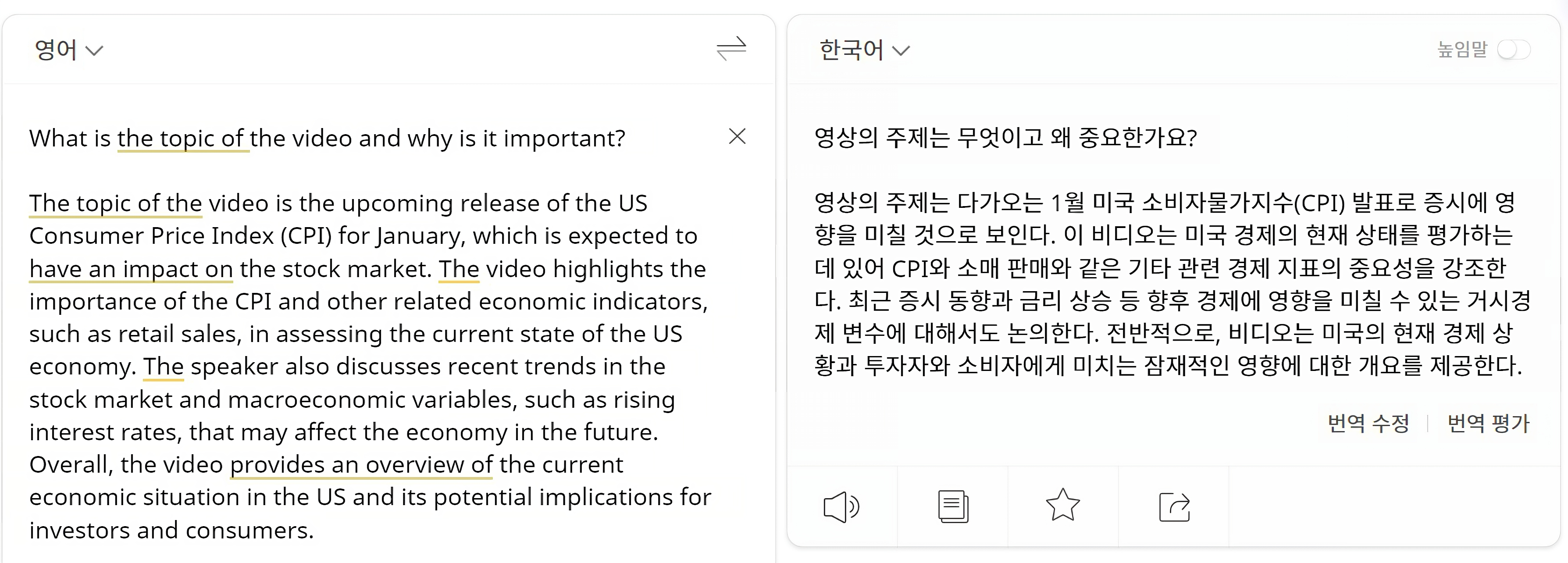 이제 영어 영상들도 얼마든지 쉽게 이해 할 수 있습니다. 저는 이를 유튜브 요약 툴을 영어공부에도 활용 중인데 꽤나 유익하네요.