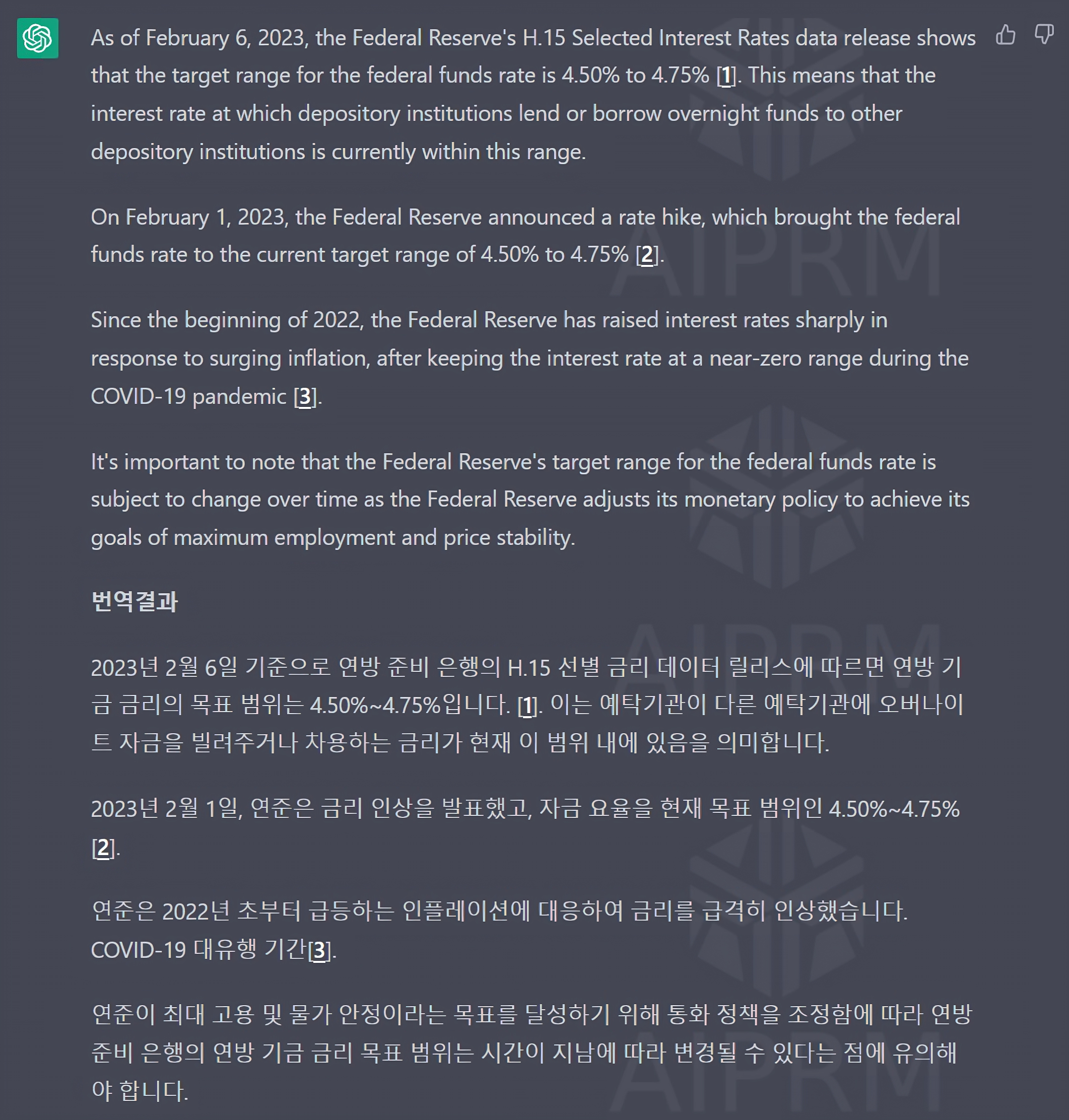 이 툴을 이용하면 ChatGPT를 사용할 때 다른 외부 번역기 없이 ChatGPT 자체 화면에서 한국어로 질문하고 영어로 질문한 효과를 얻을 수 있습니다. 답변 또한 바로 한국어로 번역됩니다. ChatGPT가 요