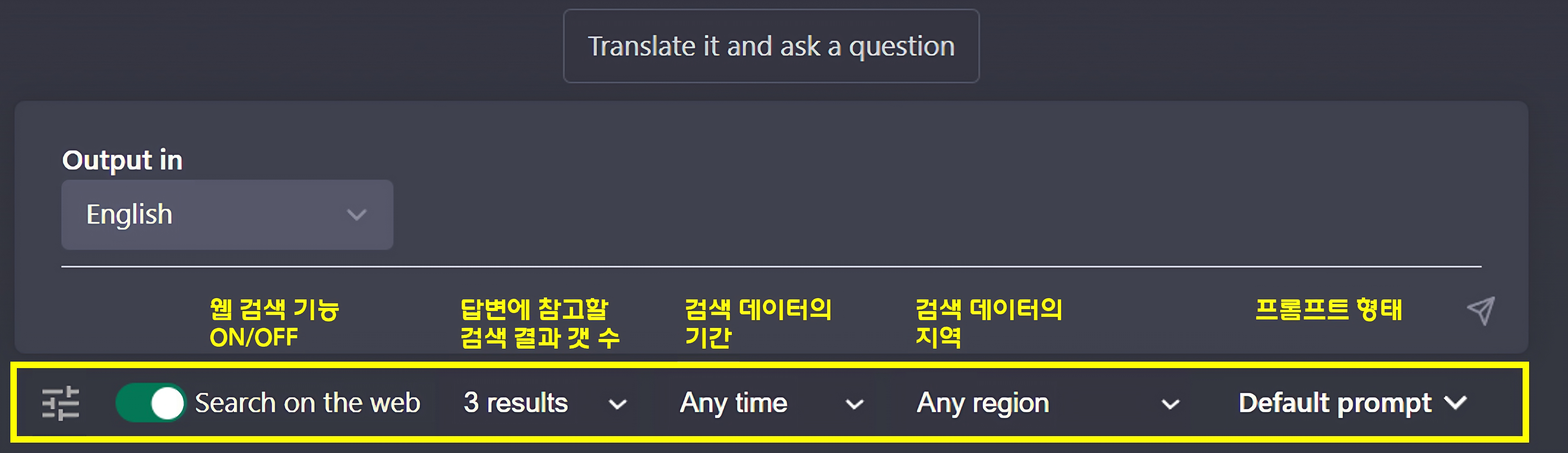 그럼 검색 기능을 켜고, 3개의 데이터를 참고하라고 해보겠습니다. (시간과 지역은 default로 두겠습니다.)